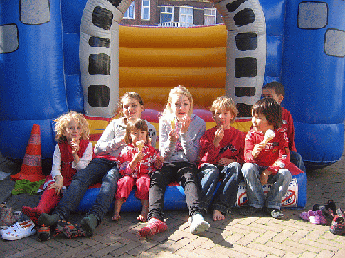 Geen straatfeest zonder springkussen. Het werd dan ook intensief gebruikt.